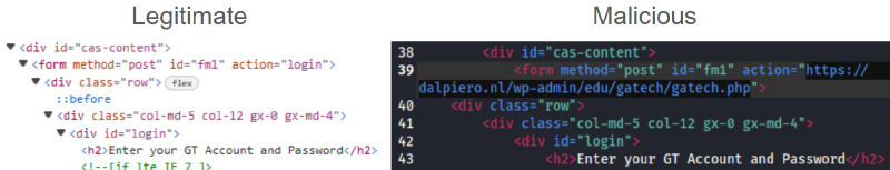 GTLogin.htmattachment. - Upon doing so, students submit their credentials to a malicious third-party, getting redirected several times until arriving at the